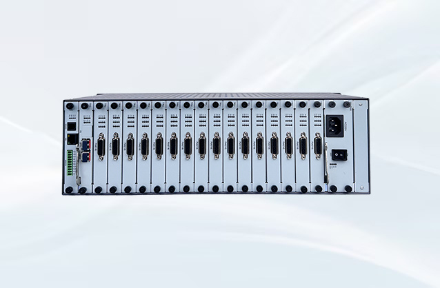 − 16 个通用业务插槽,根据用户需求配置 FXO/FXS/磁石/E&M/4 线音频/E1/以太网 232/RS422/RS485 等。